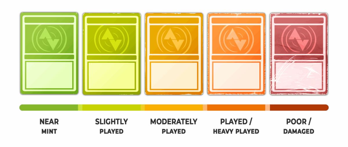 - Le carte Played / Heavy Played possono avere danni che impattano l’integrità della carta ma sono giocabili in torneo, quindi non possono esserci buchi, parti mancanti o difetti sulla superficie che rendono la carta riconoscibile al tatto attraverso una bustina.