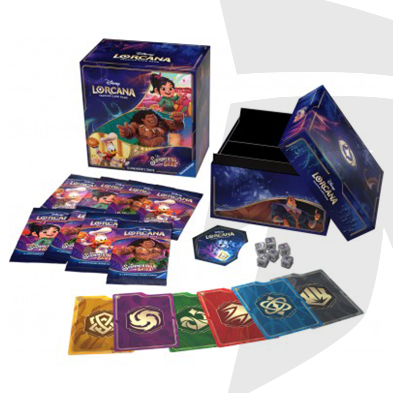 Dopo la grande paura, il sollievo di una grande festa! Visita un Illuminarium splendente di gioia in Shimmering Skies, il quinto set di Lorcana: prendi parte al grande evento con il ricco Illumineer’s Trove del set!